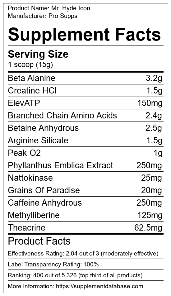 Mr hyde nutrition label. 00 15 servings 8 This formula is pretty much an insane caffeine dose with other ingredients under dosed or missing Lit Pre Workout is a solid supplement overall but. Nutrition Facts Ingredient Label. 70 inches H x 70 inches W x 55 inches L Weight.